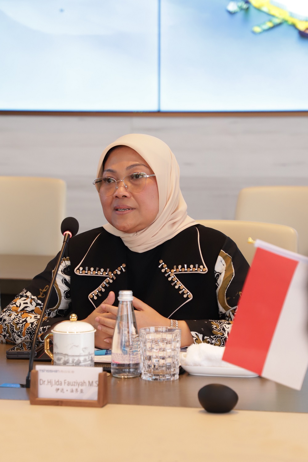 印尼劳工部部长伊达·法吉亚一行到访PA旗舰厅