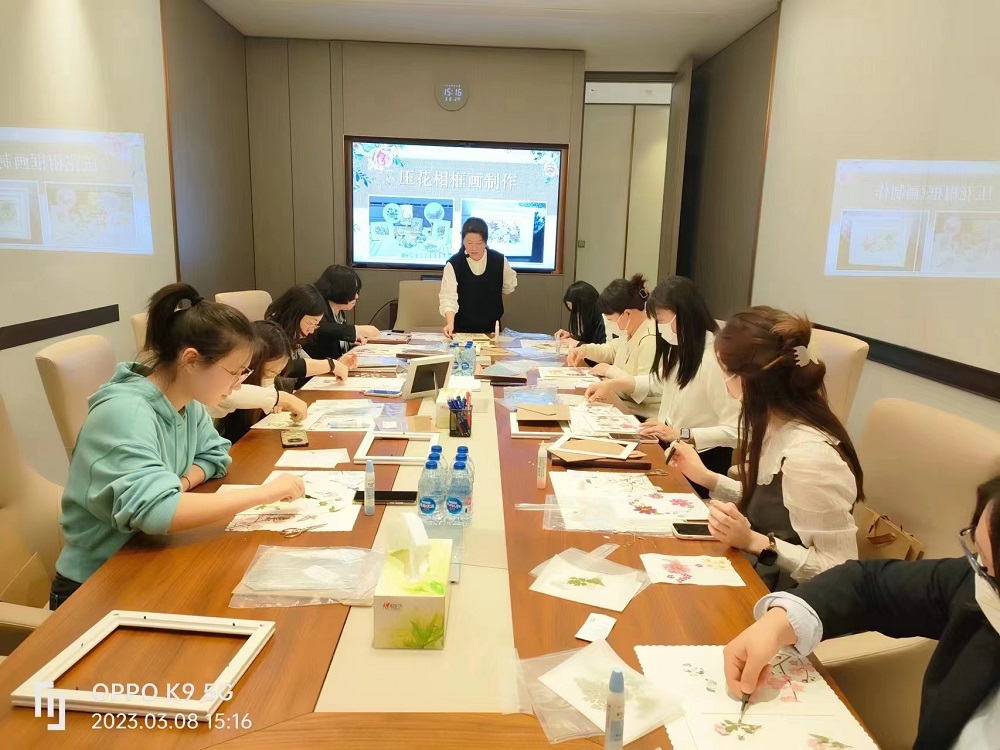 上海鼎信投资(集团)有限公司工会委员会准备了押花相框画活动,向全体女员工送上节日祝福和问候,让她们在动手制作中感受不一样的鲜花文化和手工乐趣,放松身心提升审美。活动在鼎信集团浦东新区金海路办公大楼报告厅和虹口区东大名路办公楼会议室设立会场,工会会员单位共计100余名女职工参加,特邀国际押花协会注册认证讲师团队为大家现场授课指导。