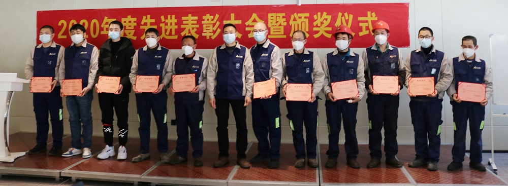 会上,张小珍宣读了2020年度先进表彰文件,张路遥、王跃、文德洪、蔡勇强为工作中表现优异的先进个人和先进集体进行了表彰,向获奖代表颁发了证书和奖金。