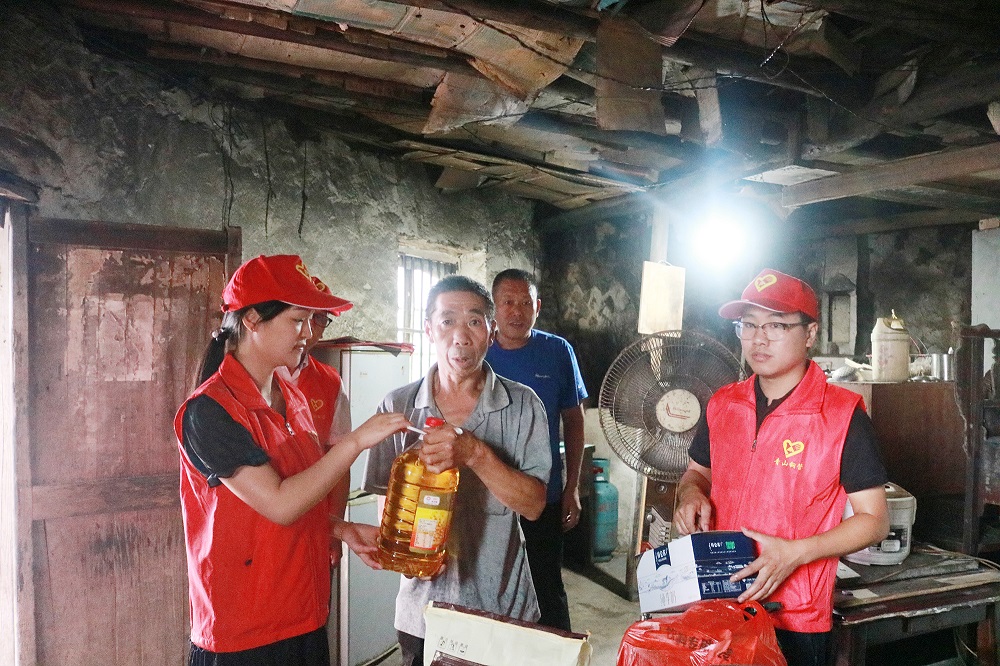 志愿者们冒着大雨挨家挨户走访,每到一户都与贫困户面对面沟通、心连心交流,详细了解他们的身体和生活状况,并送上洗漱用品、大米、牛奶、食用油等慰问品,让他们感受到企业的关怀与温暖。