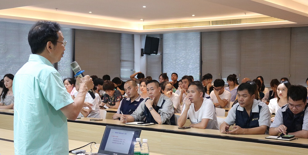 蒋海鸥详细讲解了建党历程,强调了“为中国人民谋幸福,为中华民族谋复兴”的初心和使命,并以袁隆平、倪东方、董明珠等为案例,让员工深刻了解到以劳动托起中国梦的方法即是弘扬劳动精神、工匠精神与主人翁精神。