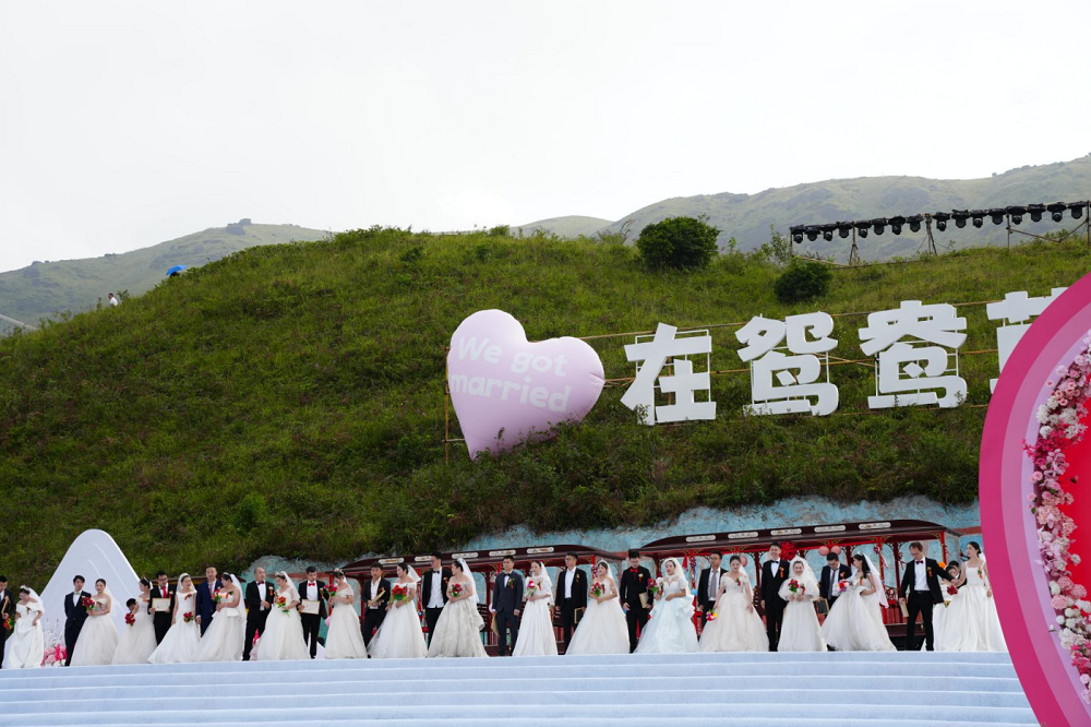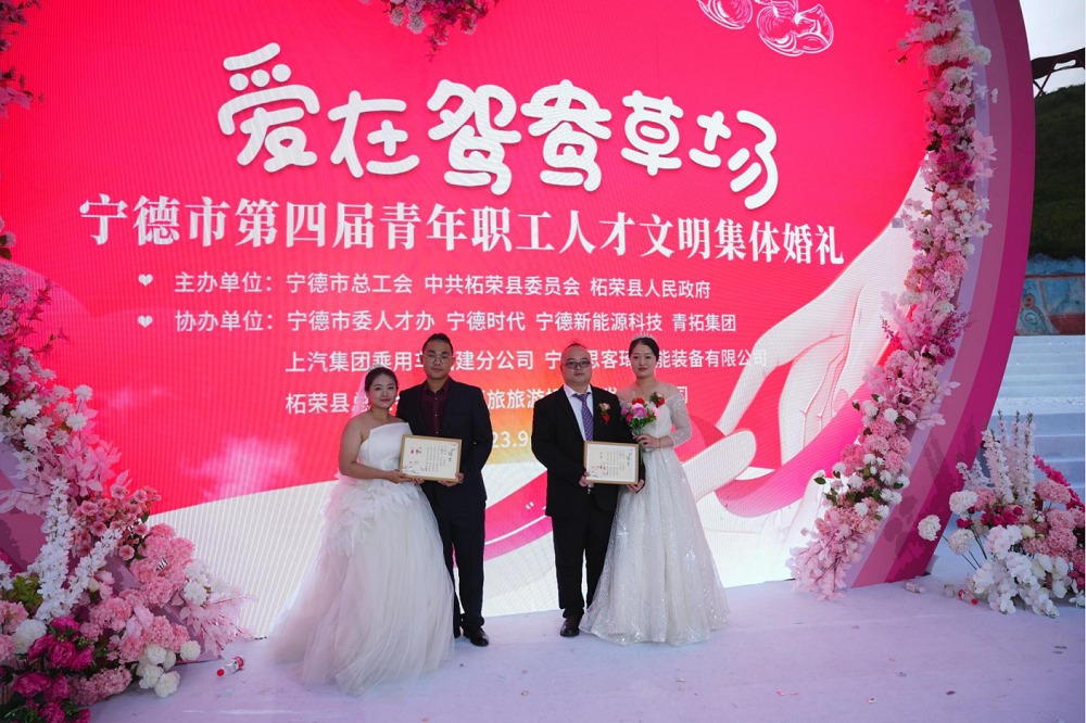 9月20日,“爱在鸳鸯草场”宁德市第四届青年职工人才文明集体婚礼活动在柘荣县鸳鸯草场顺利举行,宁德市人大常委会党组书记、主任王世雄,宁德市政协党组书记、主席兰斯琦,省教科文卫体工会工委主任郭立新,宁德市委常委、统战部部长毛祚松,宁德市政府党组成员、副市长刘笃凡,宁德市政协副主席刘国平等领导出席。来自青拓集团、宁德时代等20多家企业的100对新人参加这次集体婚礼。这是进一步打响“宁德服务”品牌,营造尊才爱才惜才的良好氛围,助推宁德市产业高质量发展,引导广大青年职工人才树立正确婚姻价值观,弘扬移风易俗新风尚的一项重要举措。
